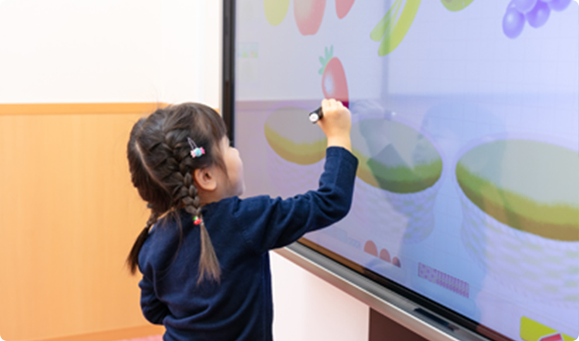 電子ボードなどのICT教材を活用しながら、楽しみつつ確実に英語力を伸ばせる教室です。