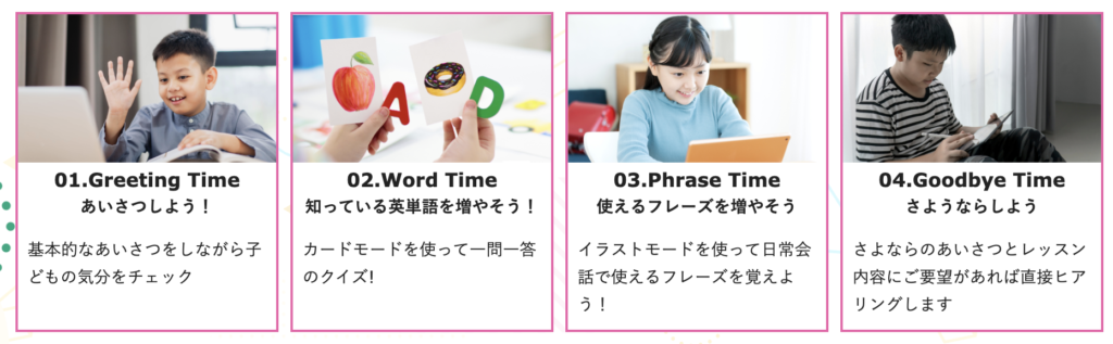 | レッスン時間 | 40分 (レッスン20分+アプリ学習20分) |