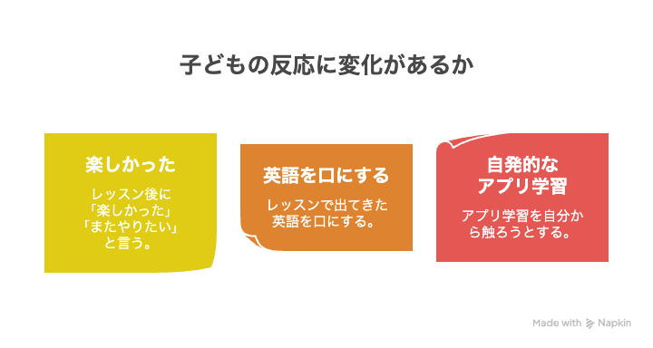 こうした反応が見られれば、学習への抵抗感が下がっているサインです。