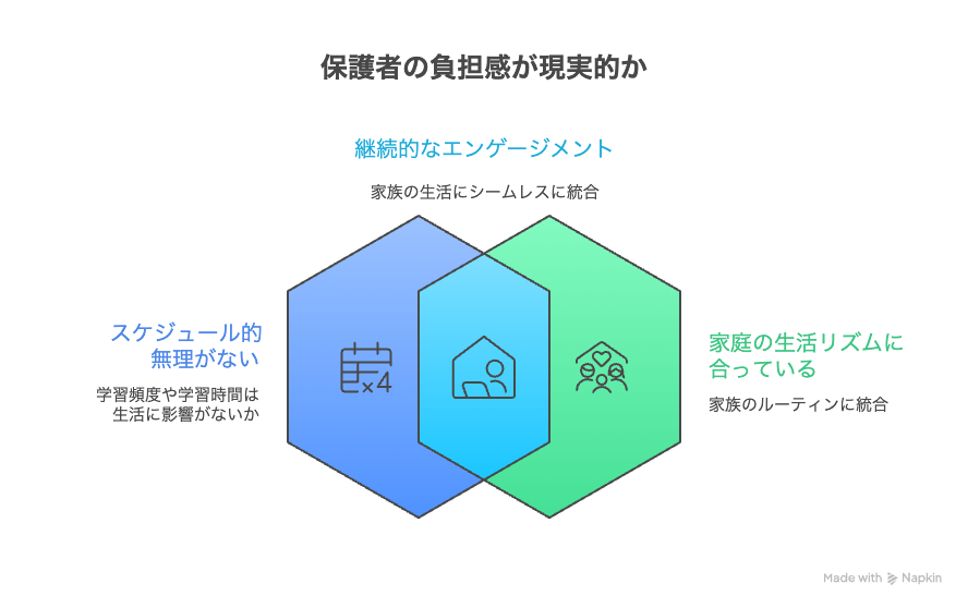 この設計により、子どもは安心した状態で英語に集中しやすくなるでしょう。