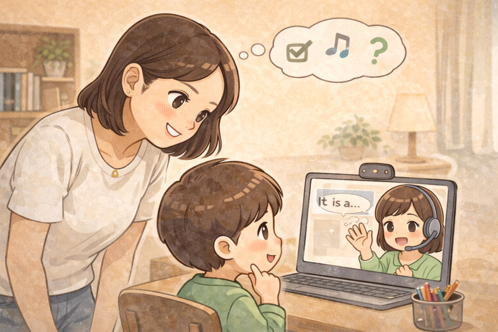 特に初めてのオンライン英会話では、画面越し・英語のみという状況自体がその子にとってのハードルになることも。